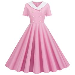 The Polyester Fashionable V - Neck Double Breasted Dress is a sophisticated and stylish garment. Made from high - quality polyester, it provides a smooth and comfortable feel, along with good durability and wrinkle - resistance. The dress features a classic V - neckline with a contrasting white collar, adding a touch of elegance.The double - breasted design with metallic buttons not only enhances the dress's aesthetic appeal but also gives it a structured and tailored look.Orders of 3000 pcs and over are shipped by ocean.